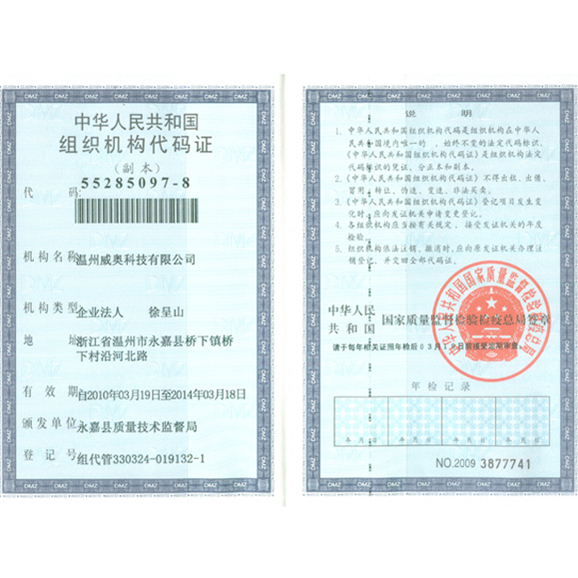 榮譽名稱:組織機構代碼